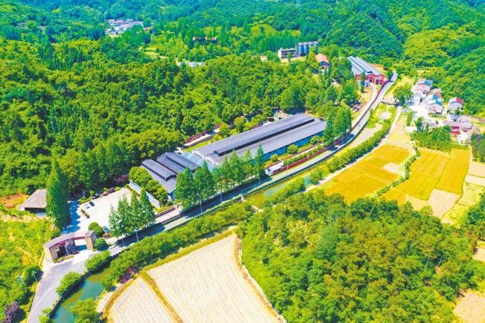 5月17日,鸟瞰谷城石花白酒生态庄园。该园以生态为基,以文化为根,以酒、文、旅“三产”融合创新为亮点,创建集生态旅游、酒文化展示、品牌传播、白酒窖藏、个性定制为一体的工业旅游景区。