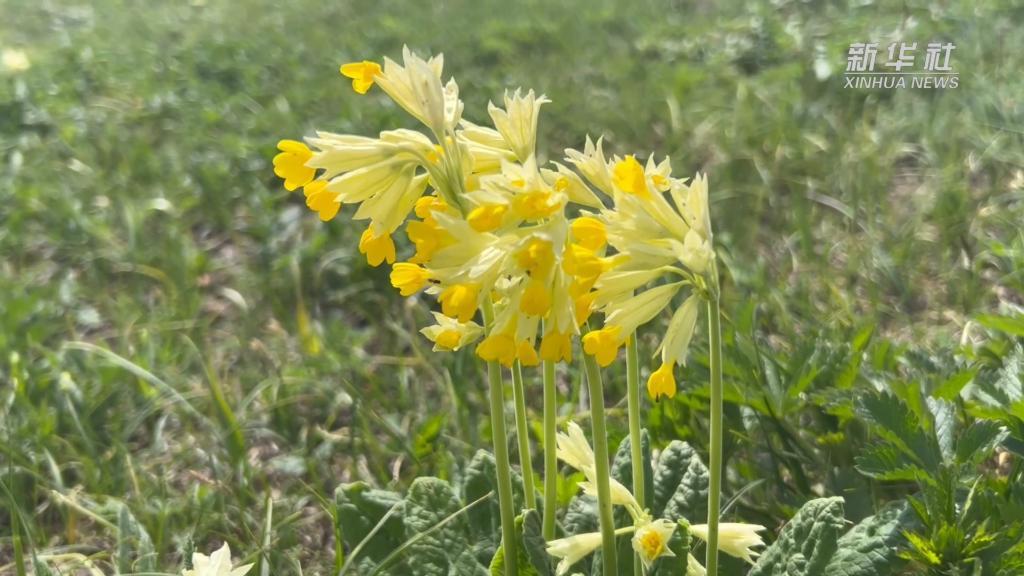 五月中旬,裕民县吐尔加辽草原鲜花绽放,辽阔的草原上点缀着星星点点的小黄花。当地严格限制放牧规模,保护草原生态。