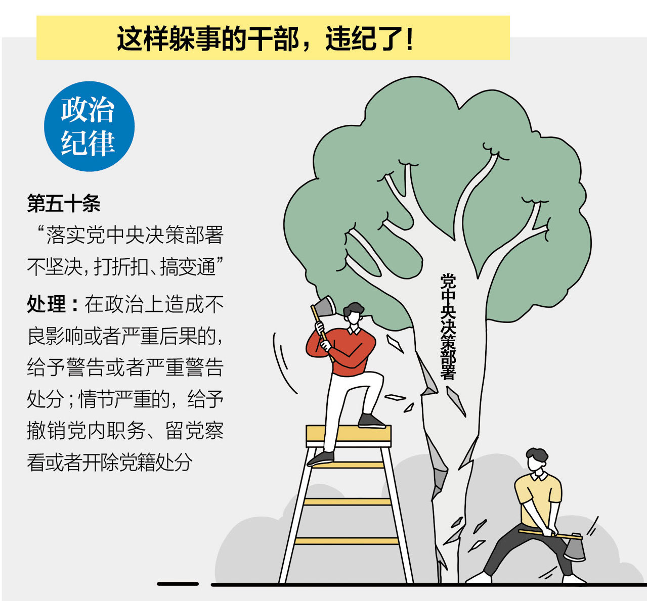 “这事我思来想去真没法干,所以就一直拖着”,某综合园区党委书记告诉记者。之前因为农村清洁能源改造,上级“一刀切”要给当地农户换成太阳能取暖。“我们这里的光照条件不好,换成太阳能的话晚上老百姓得挨冻,我得对老百姓负责。”这名基层干部所讲的事情,反映出一些干部不作为、慢作为是因为政策脱离实际没法落实。“橘生淮南则为橘,生于淮北则为枳”,有的政策没有经过调查研究,不了解基层实际情况,一刀切、瞎指挥,把一个地区的做法生硬套用在另一个地区,把城市的做法照抄照搬于农村,基层干部不是不干,是政策不符合实际情况干不了;还有的是上级要求笼统抽象,没具体政策没指导,基层不知道咋干。