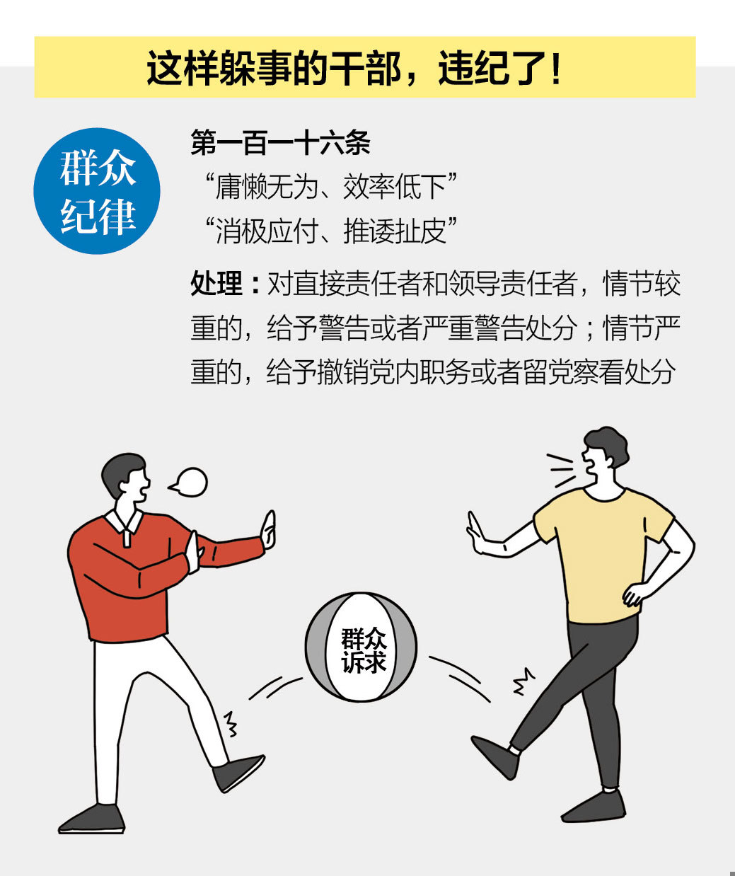 有的事情没人干是因为部门推诿扯皮,层层掣肘。有的是对待工作来回推拉,“踢皮球”、三不管。如某学校反映其门口进行道路维修,道路修通了,绿化也好了,但围挡就是长时间不拆除,严重影响师生出行安全。在调查中得知,围挡是街道设置的,但绿化属于园林部门管理,道路建设属于交通部门,街道声称不清楚绿化、道路建设什么时候结束,围挡就一直没人管。有的是明面态度好,但就是打官腔“再研究”“别着急”能拖则拖。某地工业园区干部告诉记者,在工期十分紧张的情况下,明明某事已经过书记办公会通过,但有的部门就以会议纪要没出为由拖着不给办理。