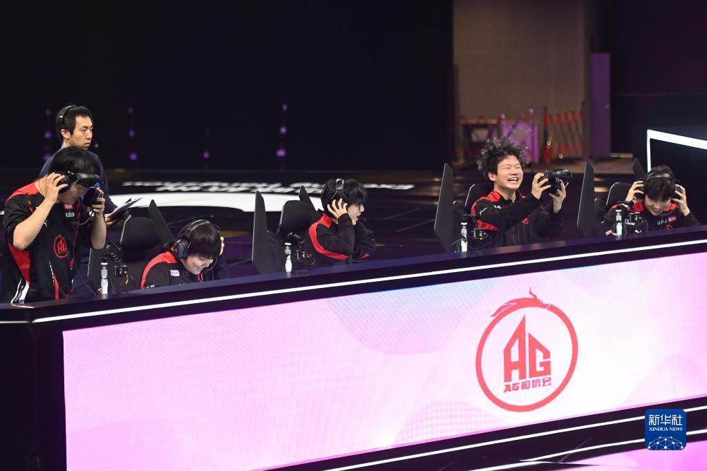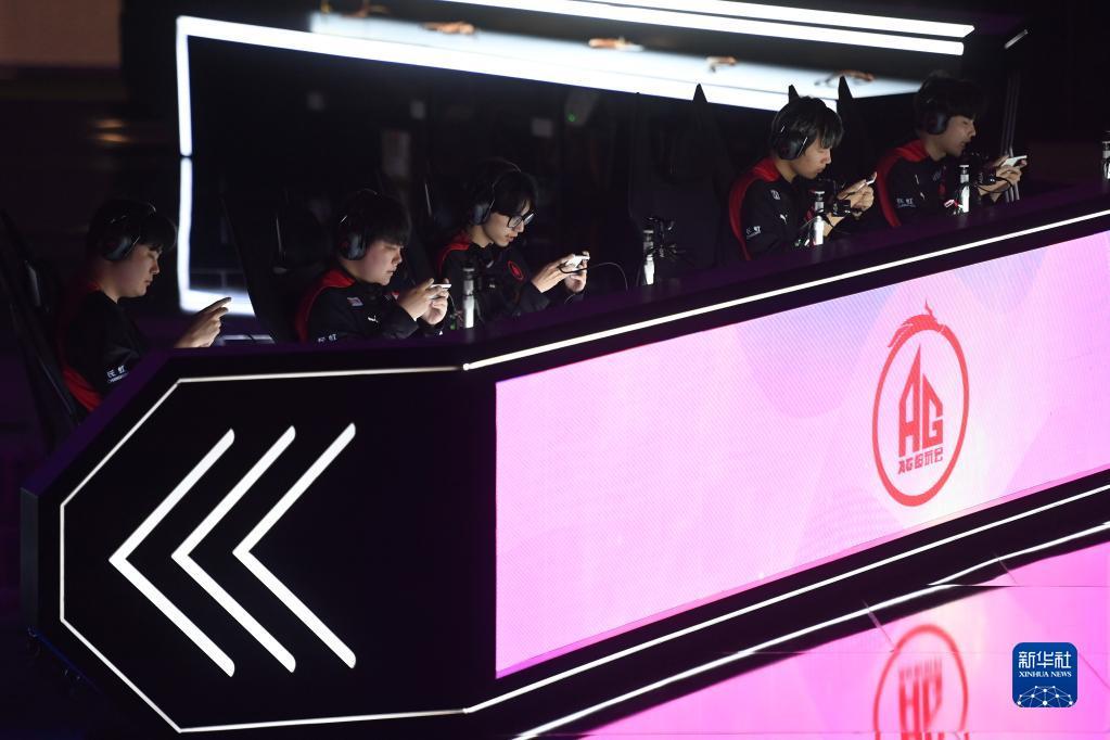 5月21日,成都AG超玩会队选手在比赛中。新华社记者 黄宗治 摄