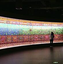 唐卡藏语意为“卷轴画”,常见的唐卡作品长宽都在1米左右,这幅长618米的巨幅唐卡尺寸之大,实属罕见。整幅作品由金银、珊瑚、玛瑙、珍珠、绿松石等纯天然矿物配制的颜料绘制而成,上下装饰的堆绣图案达3000多种。藏文化博物院用四层整层对其进行了完整展示,蜿蜒曲折的展线让人仿佛徜徉于历史长河。