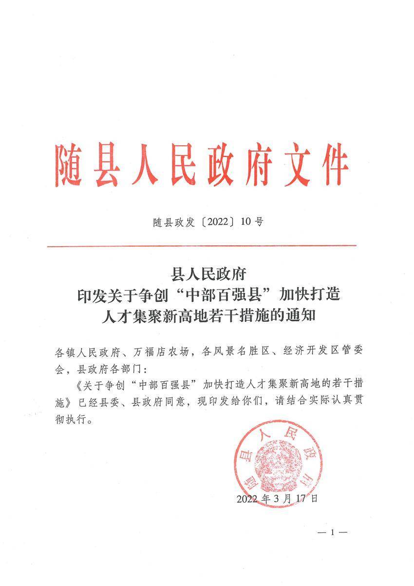 “去年,我们在全市率先制定出台《争创中部百强县 加快打造人才集聚新高地的若干措施》,提出高含金量人才新政12条,覆盖对象广、扶持力度大、经费投入高,吸引各类人才返乡‘筑梦’。”随县县委组织部相关负责人介绍,过去一年,全县公开奖励高层次人才和科技创新企业,发放各类奖励补贴95.4万元,兑现各类新政项目奖补资金208.3万元。