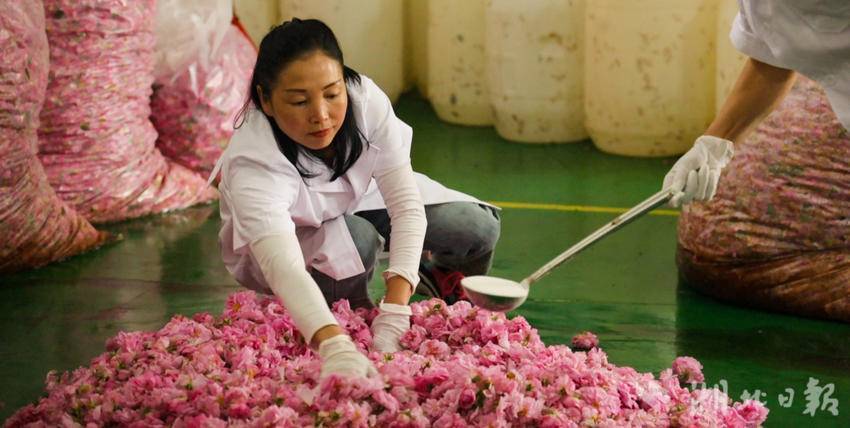 玫瑰花每年农历三月开始进入花苞采摘期,一直持续到五六月下旬。为保证玫瑰花的纯天然品质,基地按照有机生产的要求进行种植,发展大马士革玫瑰、丰花一号重瓣玫瑰等品种500余亩。目前,基地按照“公司+合作社+基地+农户”的模式,带动全村60余人就近就业,每年发放劳务工资10万余元。