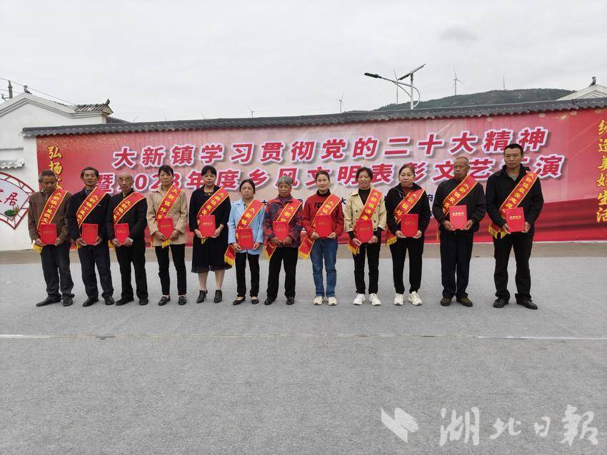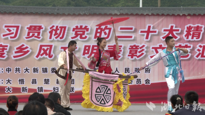 5月22日,大悟县大新镇学习贯彻党的二十大精神文艺汇演暨2023年度乡风文明表彰活动在大新镇十墩村群众文化广场上隆重举行。