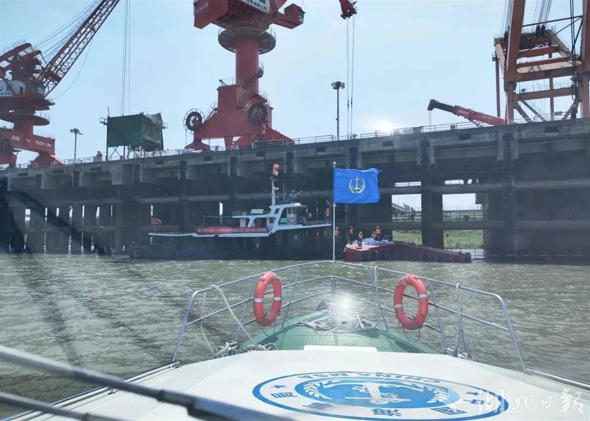 防撞设备首先在军山大桥下游金口重建码头进行预拼装。施工前,武汉沌口海事处执法人员对施工船舶施工许可、船舶船员证书、信号设备、救生消防设备、施工平台设施稳定性等进行细致检查,消除安全隐患。为期17天施工中,执法人员强化施工水域驻守维护,护航施工船拖移防撞设施至桥墩处拼接,并联系上下船舶避让通行,保障施工安全及军山桥区水域的通航安全。