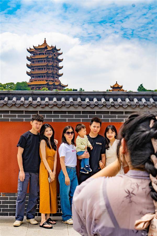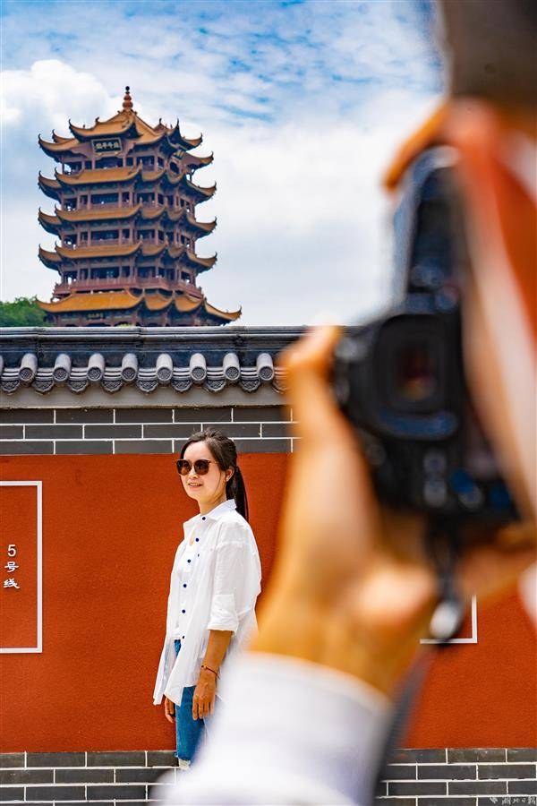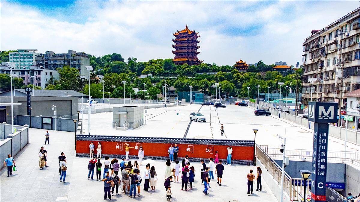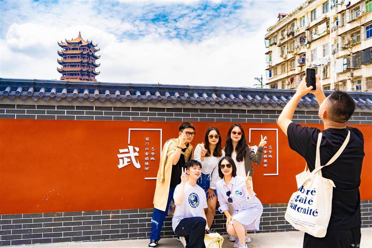 2023年5月23日,武汉地铁5号线司门口黄鹤楼站C出口旁的红墙吸引众多市民游客前来拍照打卡。近日,合影红墙上增设“钟、意、武、汉”四个艺术字体,让本就浪漫的红墙再添一抹诗意。据了解,今年以来该车站客流屡破新高单日最高客流突破18万人次,直冲全线网第二,其中大多数乘客是来和黄鹤楼合影打卡的,在地铁出入口与黄鹤楼同框成为不少外地游客来汉的必定行程之一。(湖北日报全媒记者 何宇欣 实习生 刘昊博 摄)