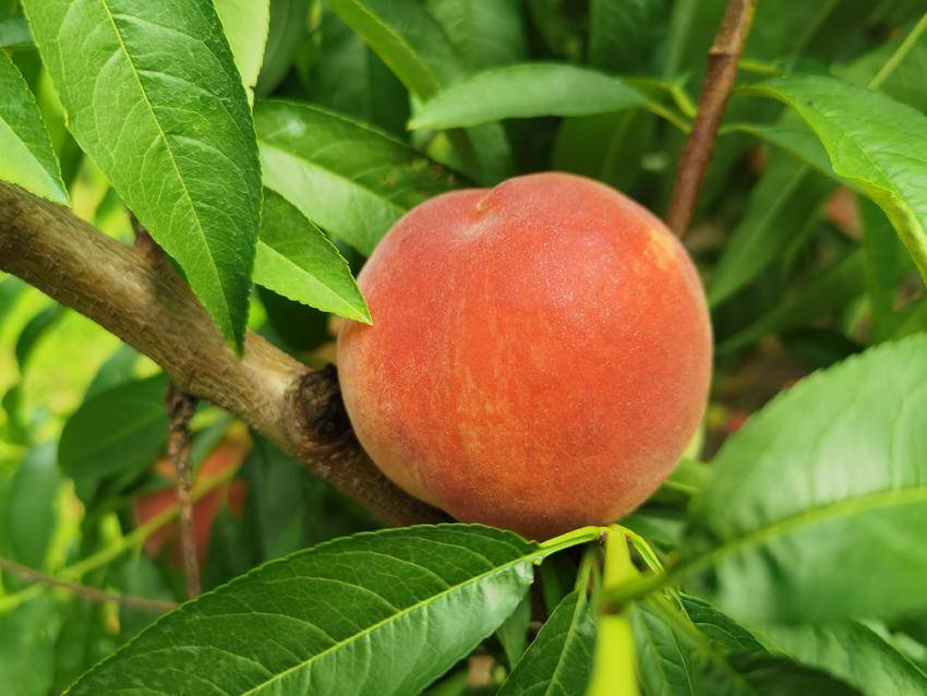 走进桃园,阵阵桃香随风袭来,沁人心脾;放眼望去,果林环抱,一棵棵桃树上挂满了红彤彤的鲜桃,在片片绿叶的映衬下,显得格外诱人。