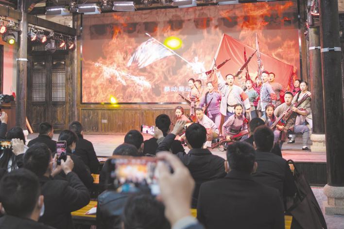 传统村落七里坪镇八一村上演红色剧目,吸引游人观看。(受访者提供)