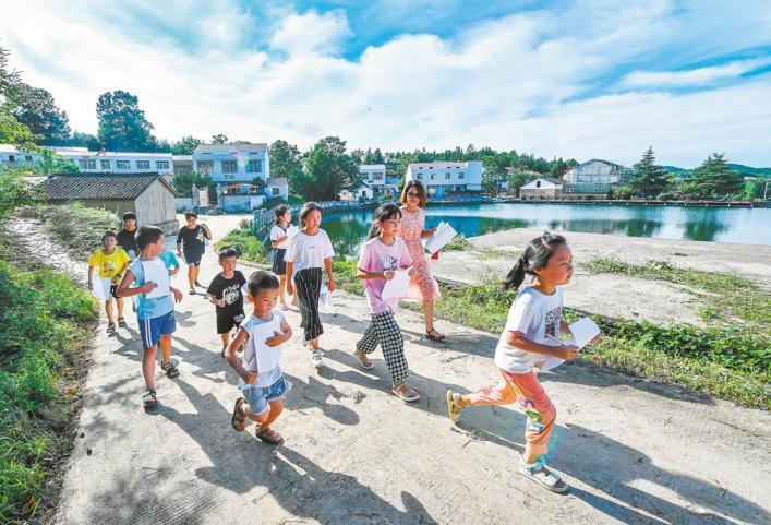 传统村落红安县柏林寺村,一群小“监督员”格外引人关注,他们在检查村里的环境卫生。(湖北日报全媒记者 朱熙勇 摄)