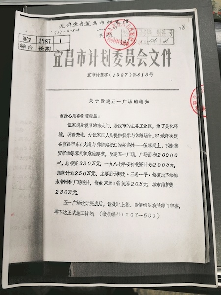 宜昌市计划委员会关于改建五一广场的通知 图片由宜昌市伍家岗区档案馆提供