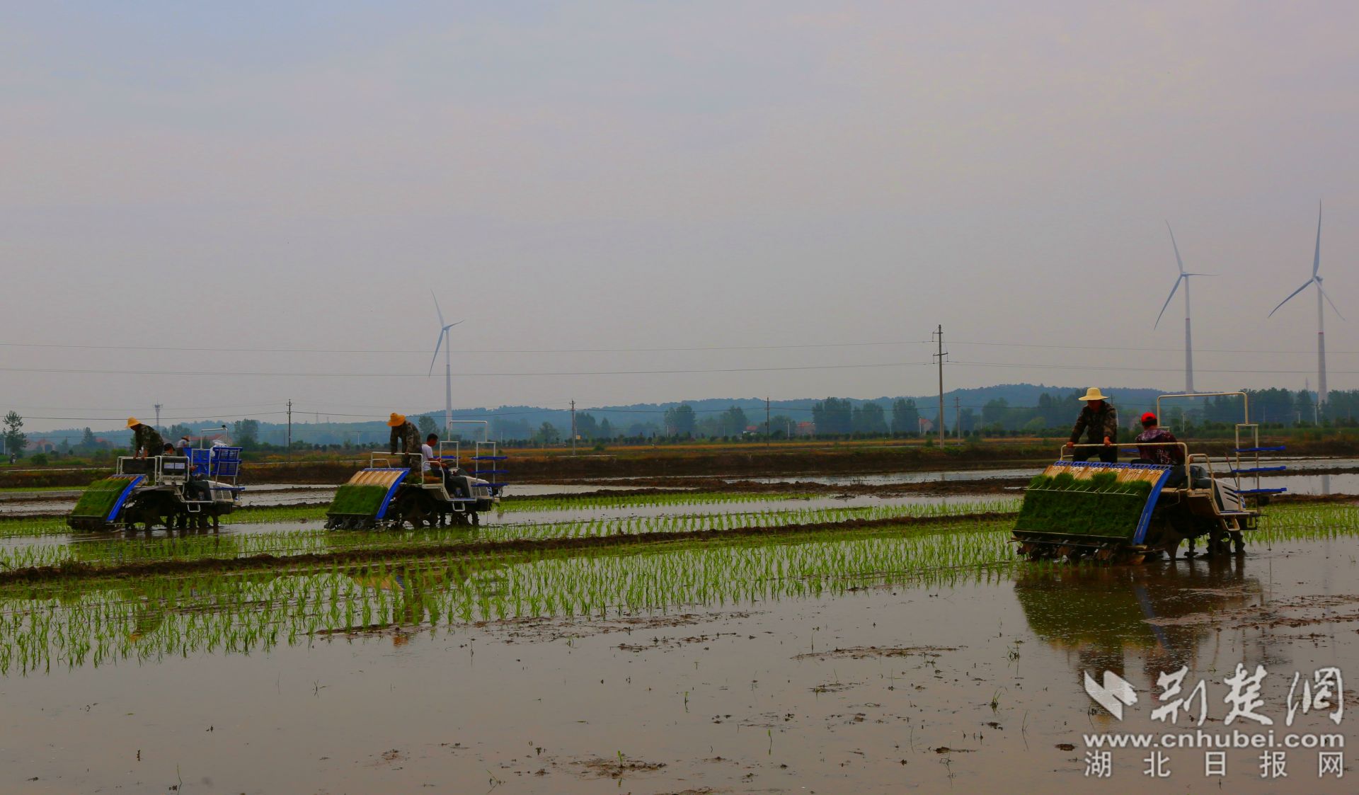 “目前,应城全市67万亩中稻已抢插60%,确保粮食全年总产超7亿斤。”应城市农业技术推广中心种植业技术推广股股长王祥发和李军同来,不禁开言表示,今年应城机械化、绿色增产等技术覆盖率达九成以上。