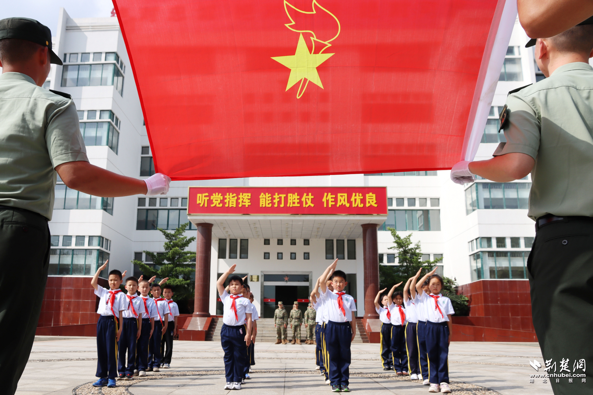 荆楚网(湖北日报网)讯 (通讯员 舒威 邱峰)“我是中国少年先锋队队员。我在队旗下宣誓:我热爱中国共产党……”在第73个国际儿童节到来之际,5月24日,武汉市江夏区退役军人事务局联合湖北省军区综合训练队、区教育局、区实验小学古驿路校区、区郑店街道办事处开展“庆六一 红领巾 进军营”为主题国防教育活动,让孩子们走进军营,零距离感受部队生活,过上一个特殊的“六一”儿童节。