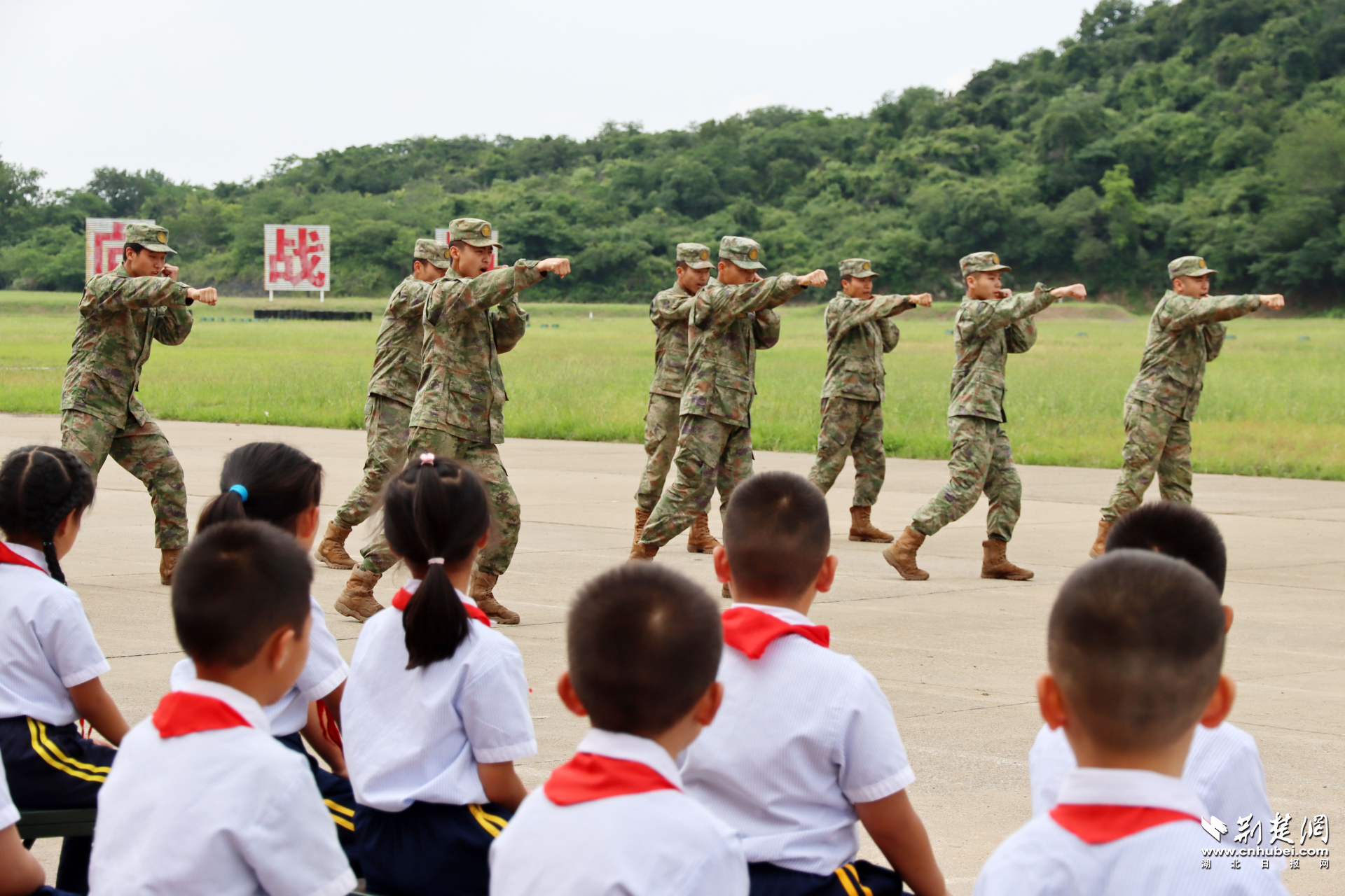 一招一式彰显军人血性虎气,一步一攻激发军人铁血豪情。训练场官兵们为孩子们演示了格斗术和队列动作,官兵们整齐划一的队列动作,感染了在场师生,让他们惊叹不已。