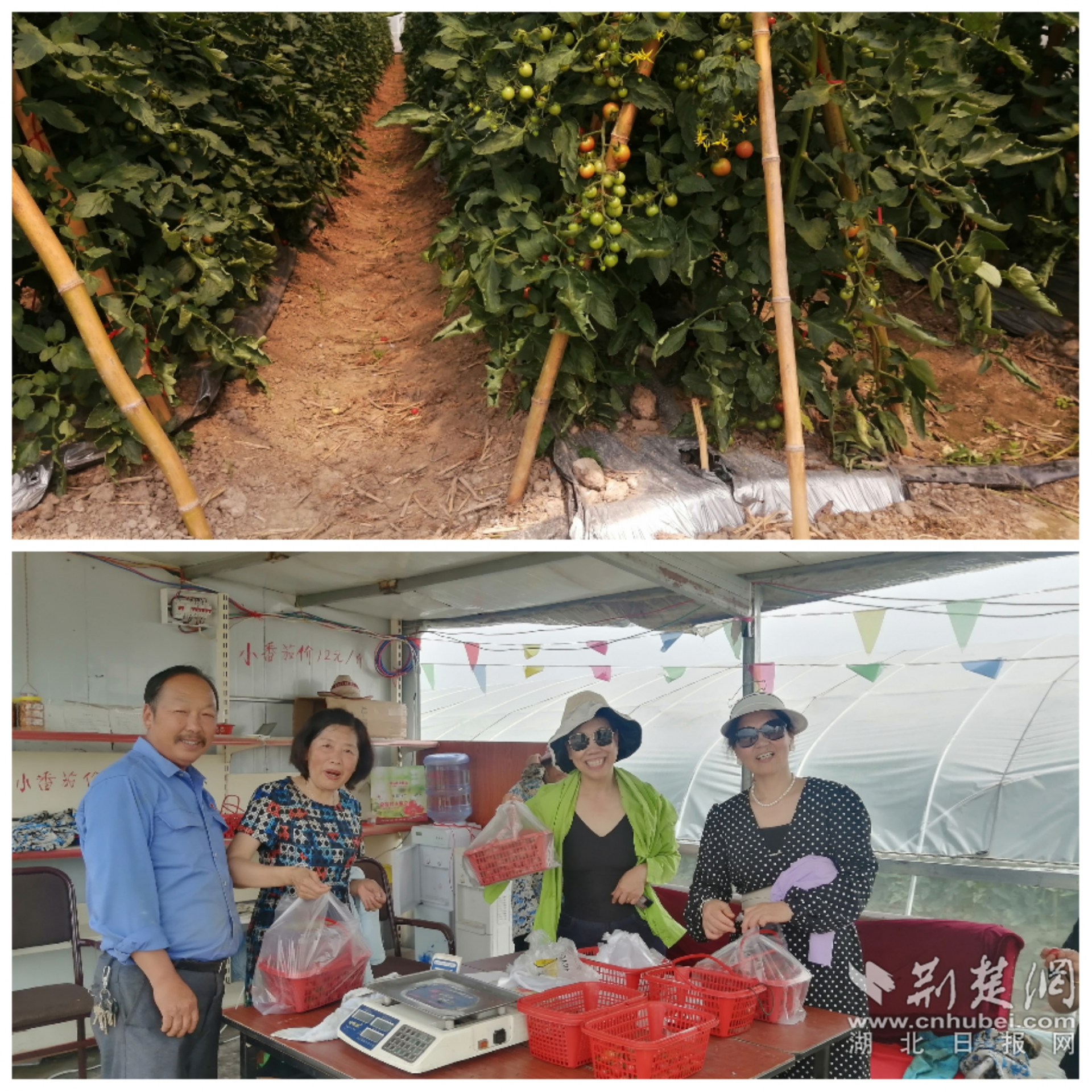 共享农站生态农业有限公司小番茄喜获丰收,武汉、孝感等周边市民前来采摘。通讯员 供图