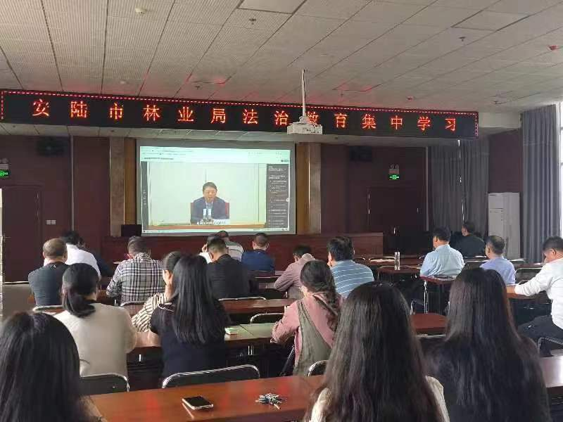 5月25日,安陆市林业局组织全体干部职工开展法治教育集中学习,观看专家精品课程,宣传贯彻习近平法治思想,强化行政执法能力建设。