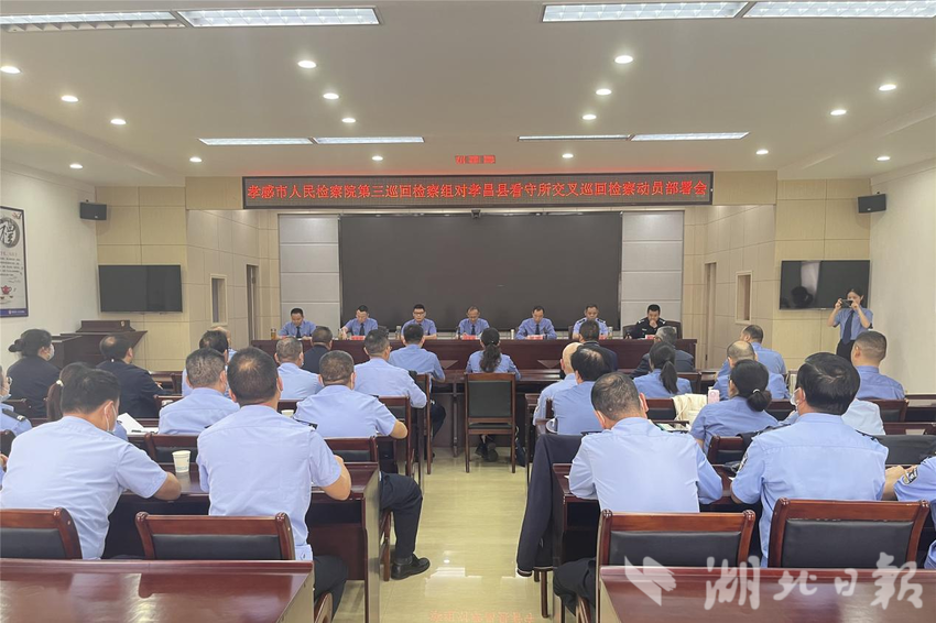 为贯彻落实最高人民检察院《人民检察院巡回检察工作规定》和最高检、省检察院有关全面推开看守所巡回检察的部署要求,孝感市检察院授权云梦县检察院对孝昌县看守所开展巡回检察,5月22日,云梦县人民检察院在孝昌县人民检察院召开动员部署会,部署对孝昌县看守所交叉巡回检察工作。