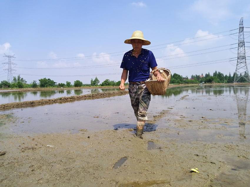 5月24日,在孝感市孝南区朱湖办事处鄂宝糯稻种业科技有限公司种子培育基地,返乡创业的孙俊正挥汗如雨与大伙一起在田间忙碌着,开沟筛种,一丝不苟。