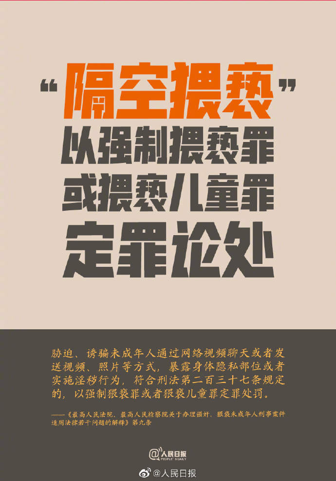 25日,两高联合发布司法解释。其中,两高对隔空猥亵发布司法解释,以强制猥亵罪或猥亵儿童罪定罪论处;精神发育迟滞未成年怀孕可直接立案…戳↓↓每一个孩子都要健康快乐成长!