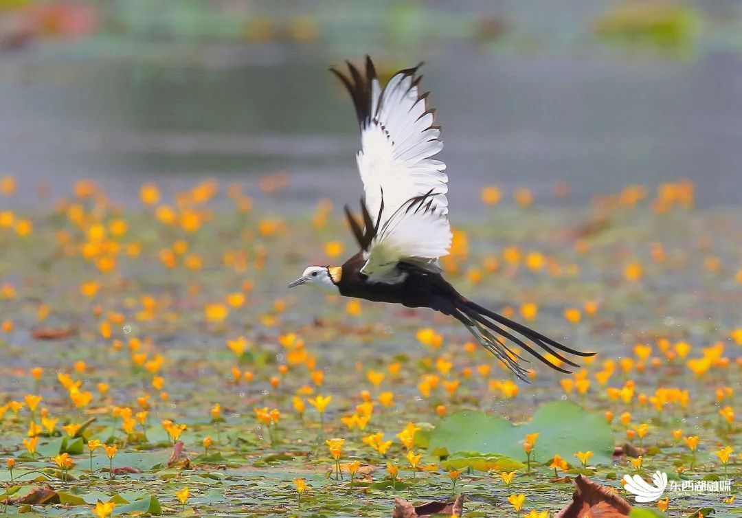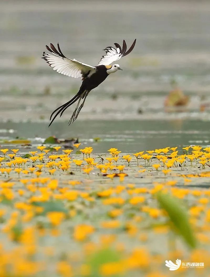 水雉低空划过湖面上的青荇
