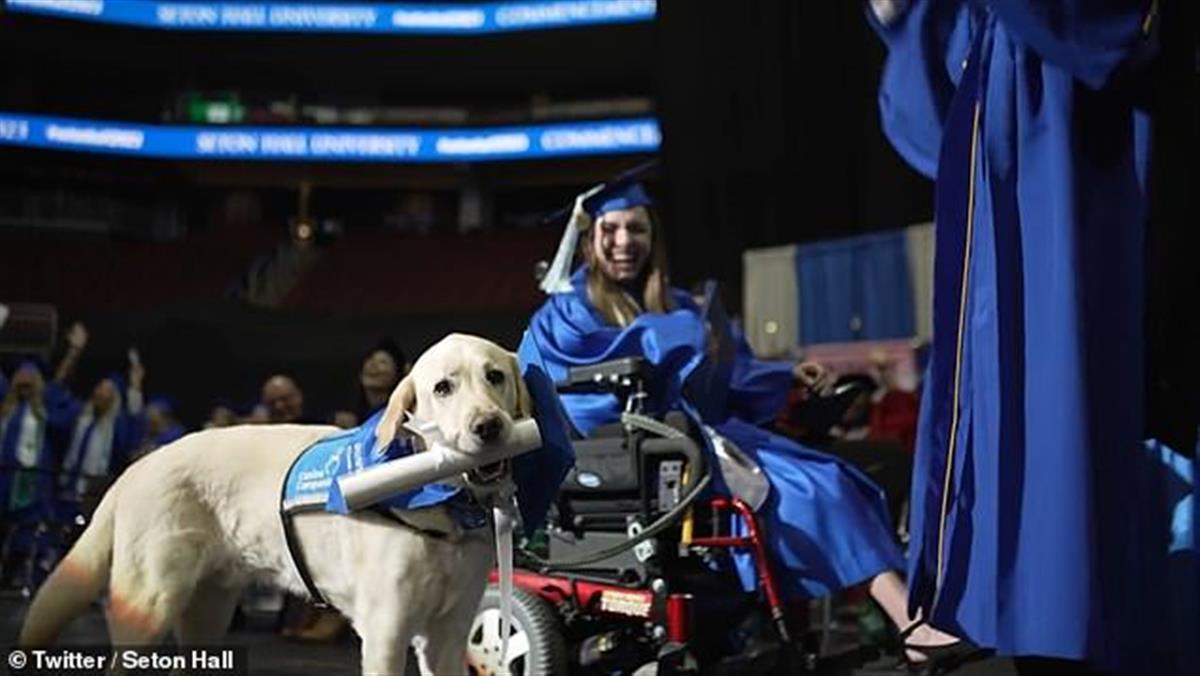 据英国《每日邮报》5月28日报道,近日,美国一只服务犬获得大学文凭一事,在社交媒体上引发广泛关注。报道称,美国新泽西州的一只服务犬“贾斯汀”因为陪伴主人格蕾丝·马里亚尼上完大学期间的所有课程,在毕业典礼上获得了由校长颁发的毕业证书。