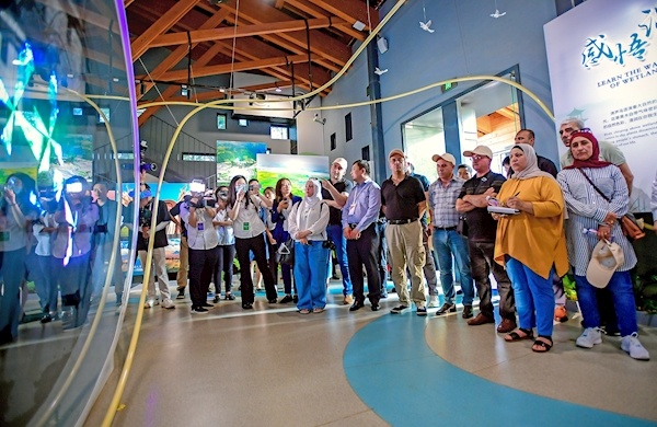 考察团参观中国履行《湿地公约》30周年成就展 摄影:楚天都市报极目新闻记者刘中灿