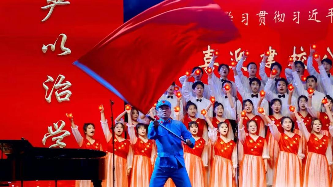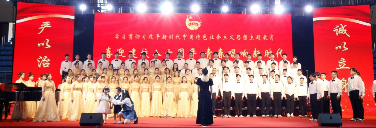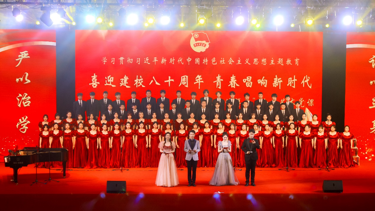音乐能传递情感、凝聚人心,音乐能陶冶情操、启迪智慧。“学校将学习贯彻习近平新时代中国特色社会主义思想主题教育与音乐结合起来,把党的奋斗历程和民族的光辉历史融入一曲曲红色经典曲目中,涵养学生爱国爱党情怀。把学校八十年的发展进程寄托在一首首校园歌曲中,振奋全体师生的主人翁精神。全体师生共同用合唱艺术的形式演绎了一堂精彩的党课。”团委负责人陈玲说。
