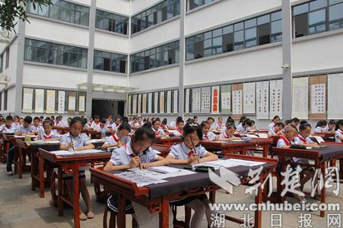 荆楚网(湖北日报网)讯(通讯员 代海燕)“近三年来,十里牌小学坚持由学生轮流书写校名,且书体多样,旨在弘扬中华优秀传统文化,加强美育教育,培养少年儿童爱家、爱校、爱国的良好情操。”5月29日, 荆门市掇刀区十里牌小学党支部书记、校长许飞说。
