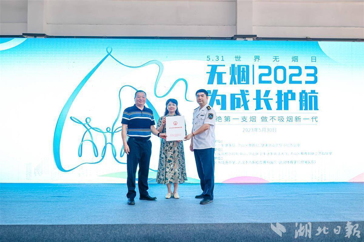 湖北日报讯(记者李先宏、通讯员邓洲、王峰、孟松涛)5月30日,由武汉市洪山区卫生健康局、教育局、健康洪山领导小组办公室联合主办的“无烟 为成长护航”主题宣传活动在书城路中学举行。洪山区疾病预防控制中心、卫生计生执法大队、教育局体卫艺指导室、武汉中西医结合骨科医院等8家单位参与宣传活动,倡导青少年“拒绝第一支烟”,共享无烟环境。
