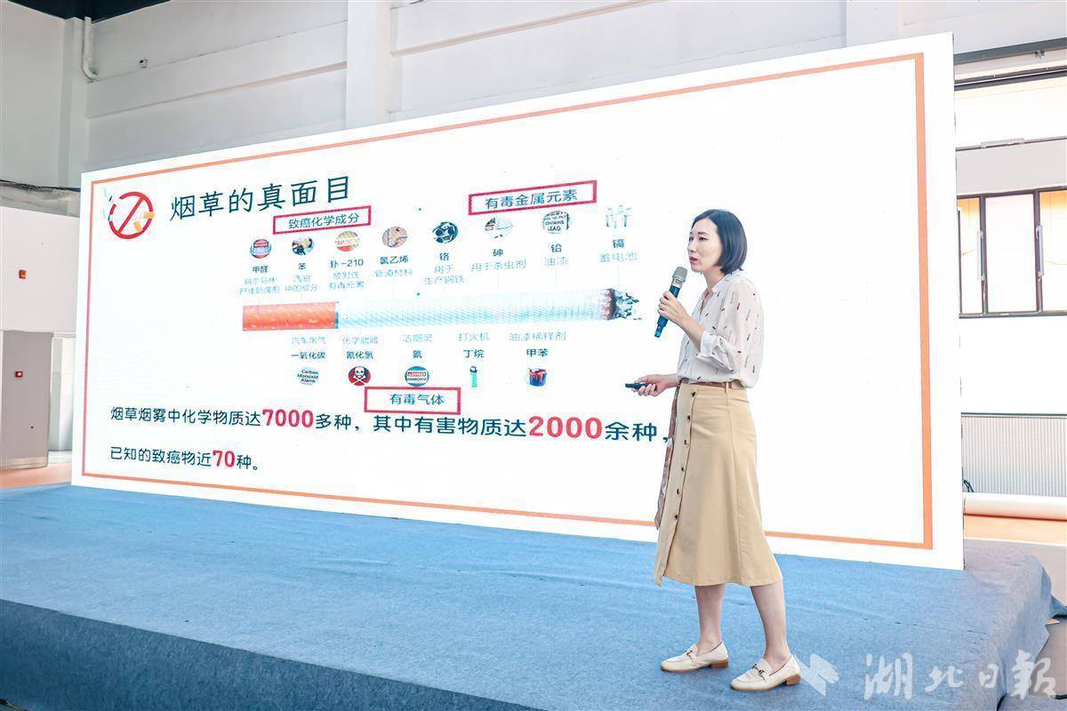 湖北省疾控中心健康教育所马丽娜主任带来了《远离烟草——让我们一起和烟草说NO》的科普讲座,呼吁全社会积极参与控烟,为广大青少年营造一个无烟、清洁、健康的成长环境。希望每一位青少年珍惜自己的身体,珍惜自己的年华,自觉树立控烟意识,养成良好的健康生活方式,拒吸第一支烟,做不吸烟的新一代。