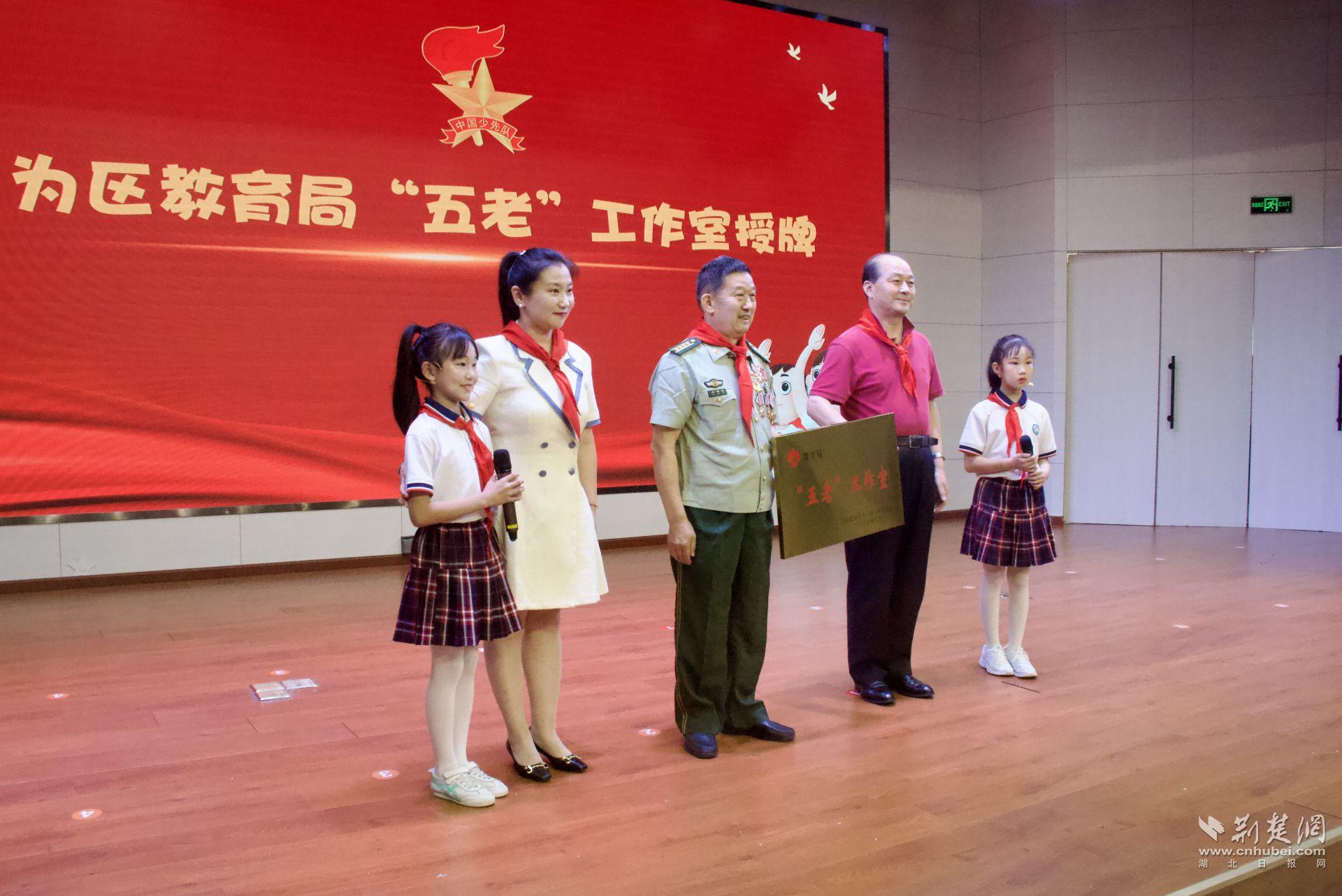 洪山区人大原常务委员会主任、书记、区关工委刘少甫主任为区教育局“五老”工作室授牌。