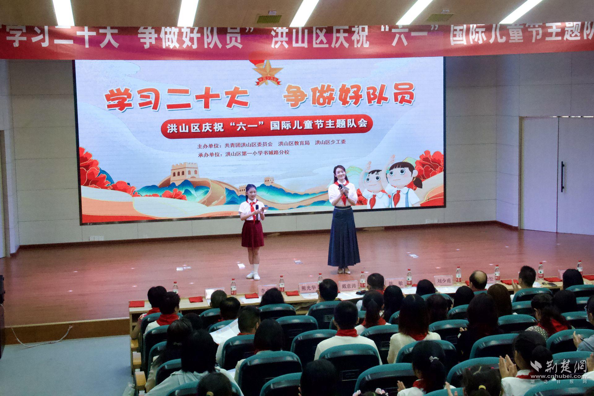 荆楚网(湖北日报网)讯(记者 潘佳凝 通讯员 商德芬 刘箫 实习生 周莹)5月30日下午,由洪山区团区委、区教育局、区少工委主办的“学习二十大 争做好队员”庆祝“六一”国际儿童节主题队会在洪山区第一小学书城路分校举行。