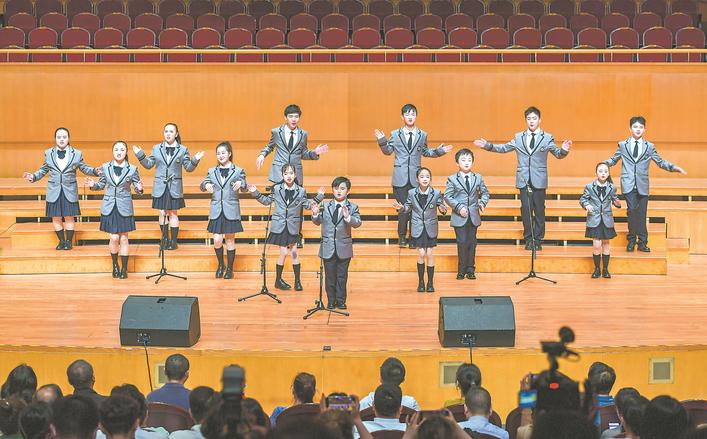 5月31日晚,“听,天使在歌唱”——武汉市盲童学校“六点天使”艺术团合唱音乐会在武汉琴台音乐厅温情开唱, 孩子们用天籁之声为听众献上一场听觉盛宴,并以此庆祝即将到来的六一儿童节。“六点天使”源于盲文是“六点字”,六点钟是太阳升起的时间,代表着希望。楚天都市报极目新闻记者黄士峰 李碗容摄影报道