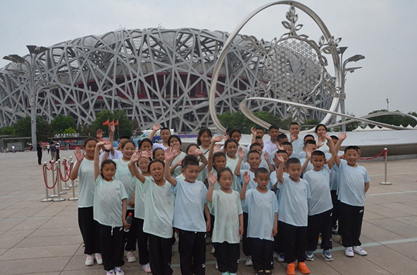 图为参加活动的青少年在鸟巢前合影。索朗旺堆 摄