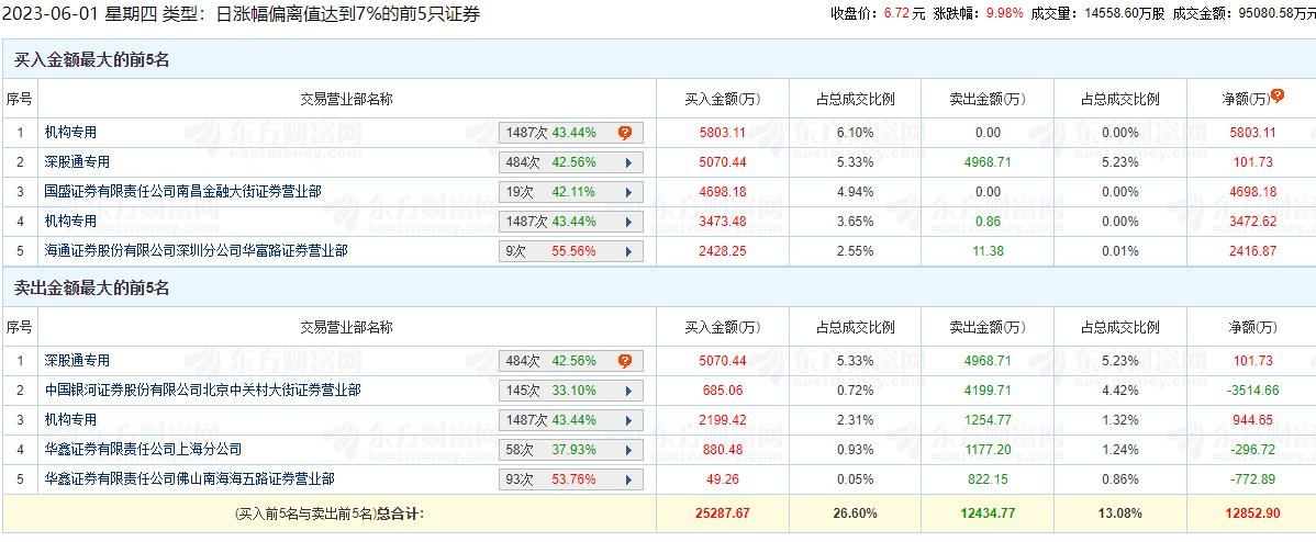 龙虎榜数据显示,作为日涨幅偏离值达到7%的前5只证券,电广传媒买入金额最大的前五名中,有2家机构专用席位;卖出金额最大的前五名中,有1家机构专用席位。经统计,电广传媒今日的机构席位净买入金额为10220.38万元。