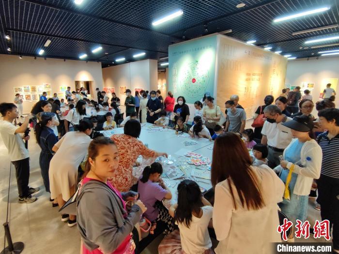 孩子们在画展现场参与手工活动。 闫旭 摄