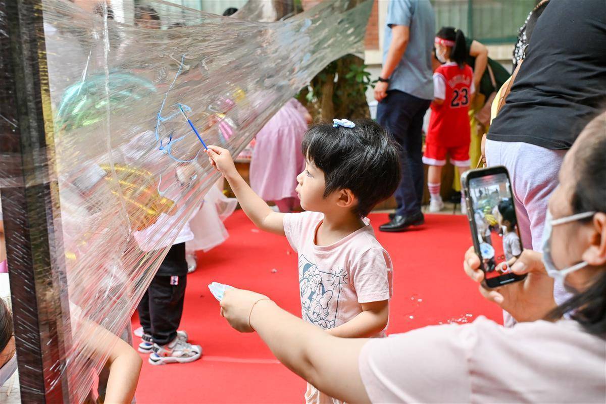 热身、涂鸦、手工装饰、随机舞蹈,亲子活动的所有环节都由心理健康教育专业硕士研究生们策划实施。2022级研究生刘亚辉是活动的学生负责人,他介绍,同学们以后也将成为心理老师,这个活动也是在帮助他们了解亲子关系、提升自己的专业能力。