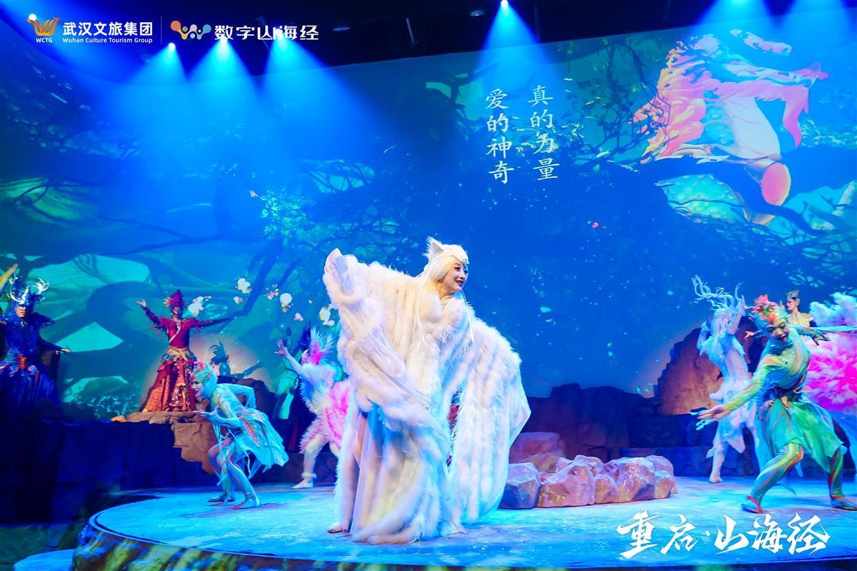 《重启·山海经》由武汉文化旅游集团有限公司联合山水盛典文化产业股份有限公司倾力打造,由中国山水实景演出创始人、国家一级编剧、著名导演梅帅元执导,以上古奇书《山海经》为蓝本,构建了一个平行时空元宇宙剧场,连接上古神话的过去和科技世界的未来。