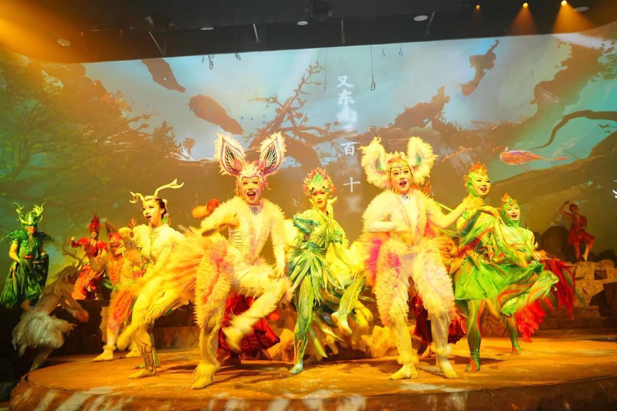 《重启·山海经》开启沉浸式穿越之旅,观众们跟随指挥官从“时空裂缝”进入山海世界,化身勇士与上古神兽烛龙、白泽、鲛人、帝江及女娲等寻找能量石,整场演出采用高科技的舞台技术手段,让观众沉浸式体验到美妙绝伦的奇幻效果。