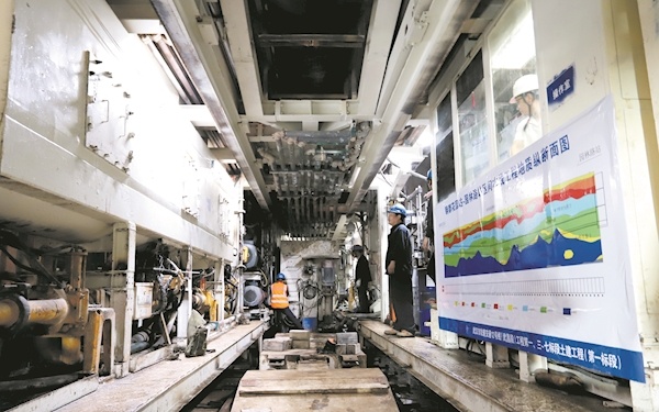 记者注意到,在大屏幕的一侧,悬挂着企业文化标语、项目“作战图”、地质纵断面图、风险源关系及处理措施图,所有的信息都标得一清二楚。“我们将充分发挥‘隧行道远,掘进未来’的精神,精诚协作确保如期完成任务。”余守龙介绍,本次盾构始发后,“城发壹号”号盾构机将在24小时智能化、信息化监控下,以每天6环(9米)的速度掘进,预计在今年9月底实现右线贯通。