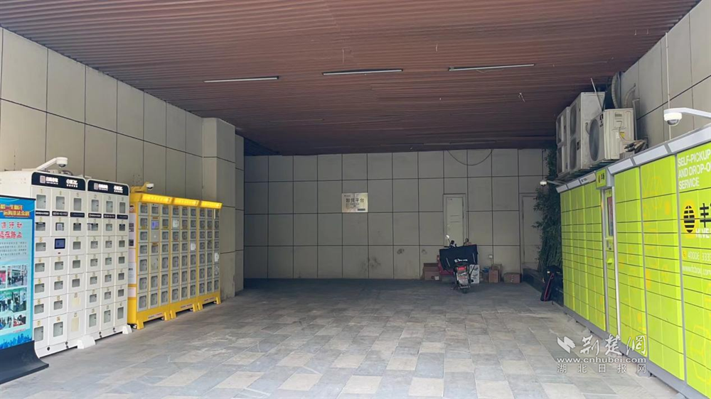 楼宇侧面的外卖柜和丰巢柜。 通讯员供图