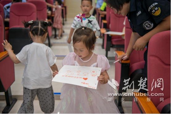 最后,警爸警妈与萌娃一起制作“六一”留言册,“爸爸妈妈辛苦了!”“希望爸爸不要天天加班,多陪陪我!”“我长大了也想当警察!”一幅幅五彩斑斓的图画,一句句稚嫩真诚的话语,共同记录下这段难忘的警营之旅。