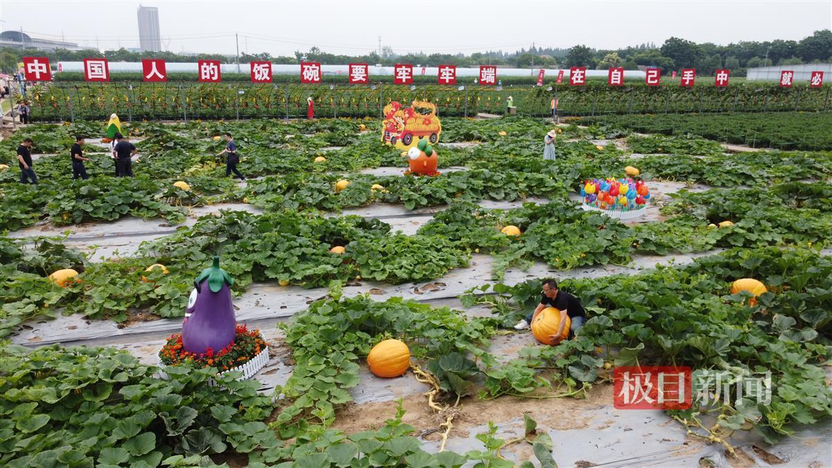 走进位于黄陂武湖的武汉种博会现场,眼前便是一片绿油油、金灿灿的五彩斑斓景象。上午10时左右,武汉市农业科学院北部园区观展入口处就有很多人驻足停留,争相选择自己看中的农产品合影。其中最受欢迎的就是橘红色大南瓜。