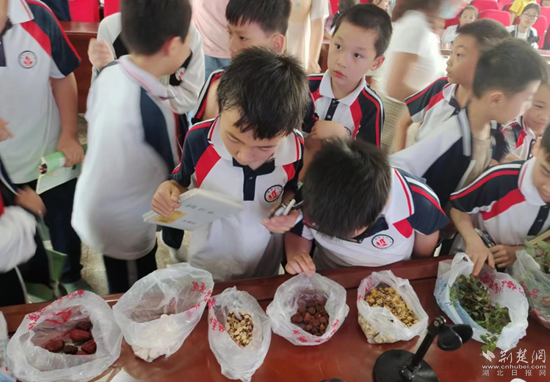 在黄梅县实验小学,中医讲师以常见的“山楂、大枣、蜂蜜、山药、莲子”等亦食亦药的““药食同源”为主题跟同学们展开讨论,引起了同学们的强烈兴趣,吸引了众多学生踊跃发言和互动,让孩子们感受到中医药文化的特殊魅力,将中医药文化种子播撒于孩子心中。