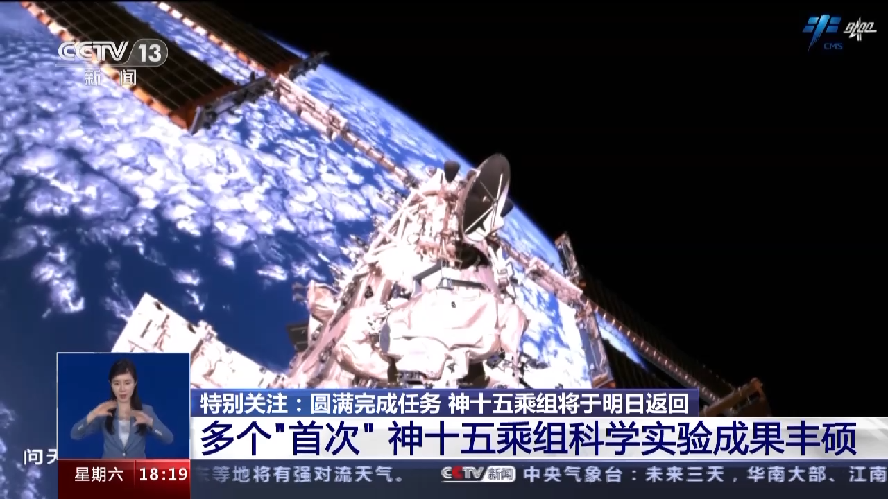 据介绍,在轨期间,神舟十五号乘组完成了4次出舱活动、8项人因工程技术研究、28项航天医学实验、38项空间科学试验及实验,以及空间站三舱状态长期驻留验证等6个方面的工作,圆满完成了全部既定任务,获取了宝贵的实验数据。