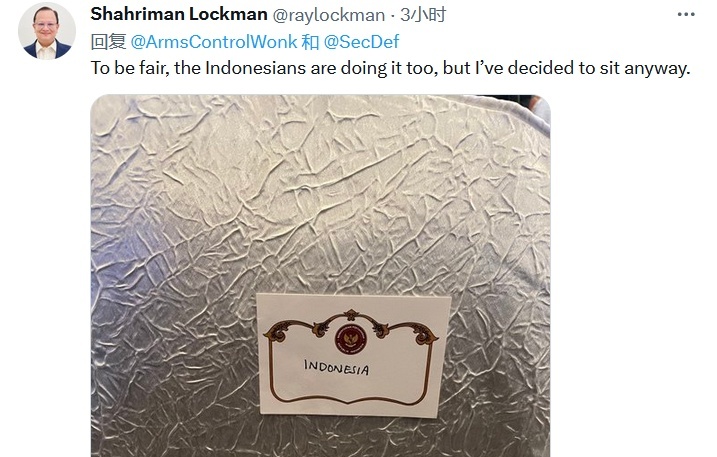 马来西亚国际战略研究所高级研究员洛克曼(Shahriman Lockman)也在评论区补充道,“公平地说,印度尼西亚代表团也在座位上贴了标签。”