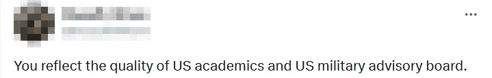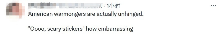 “你反映了美国学者和美国军事顾问委员会的素质”、“美国战争贩子都精神错乱了。‘哎呀这贴纸好吓人’,太尴尬了。”有人直言,难以理解一张贴纸都能让刘易斯像个跳梁小丑般上蹿下跳。
