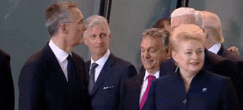 2017年北约新总部大楼揭幕,时任美国总统特朗普将黑山总理推开,挤上C位