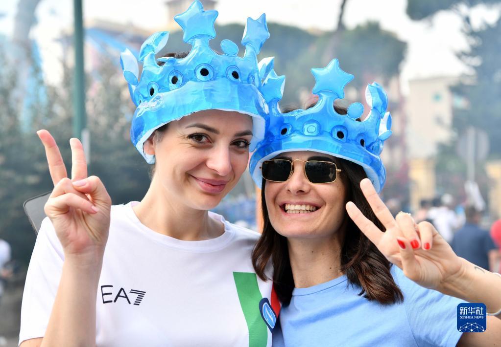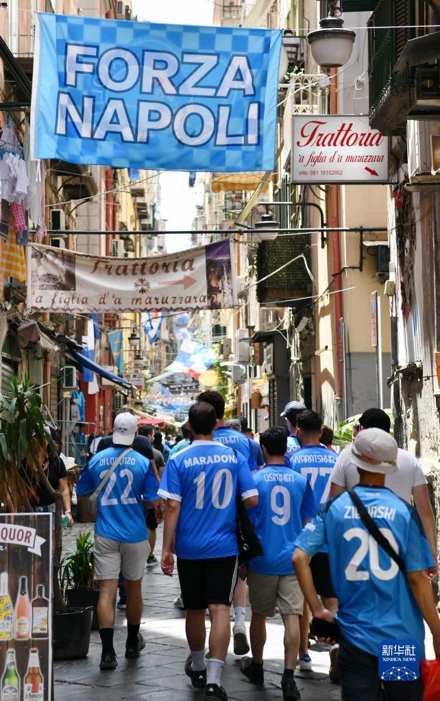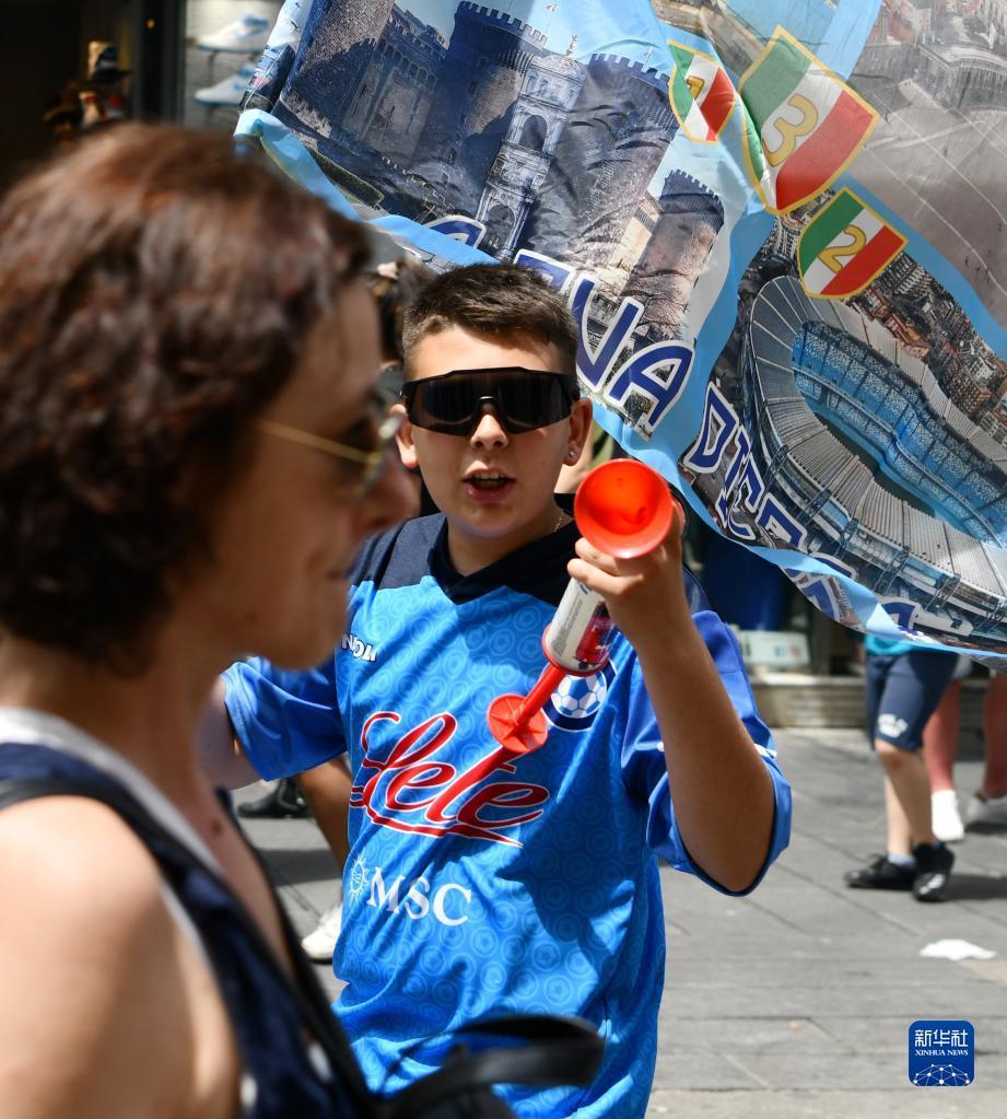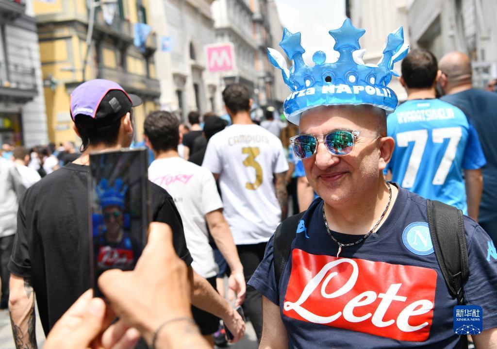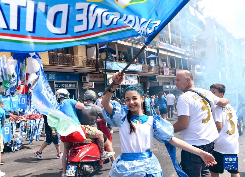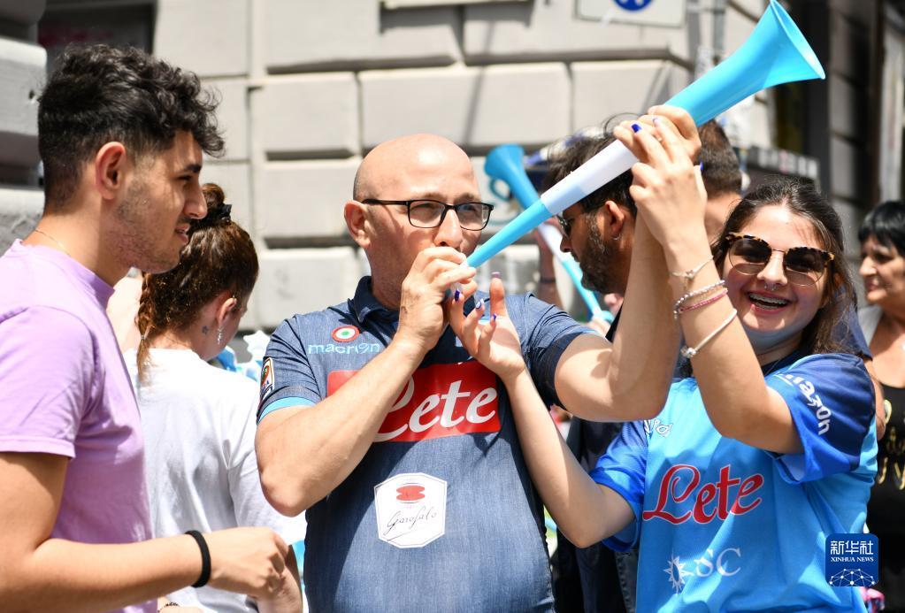 6月4日,球迷在意大利那不勒斯庆祝球队夺冠。新华社记者 金马梦妮 摄