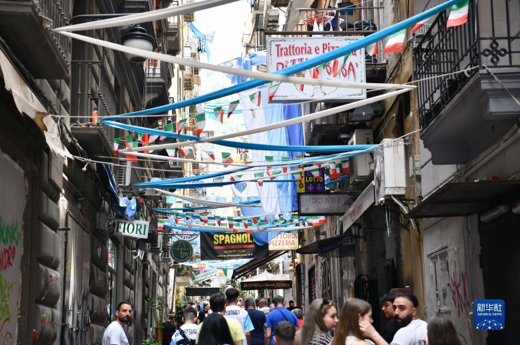 这是在意大利那不勒斯拍摄的庆祝那不勒斯队夺冠的装饰物(6月4日摄)。新华社记者 金马梦妮 摄